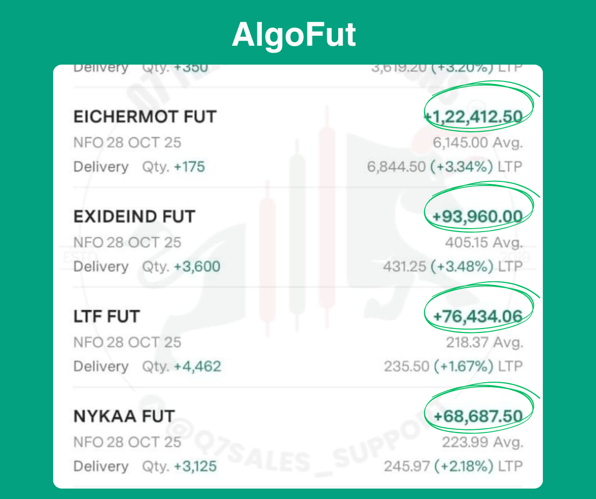 Algo Future | Stock futures | Rs. 200000 | 5%- 10% on capital* | Daily / Based on our algorithm | Yes | Professional | Learn More |