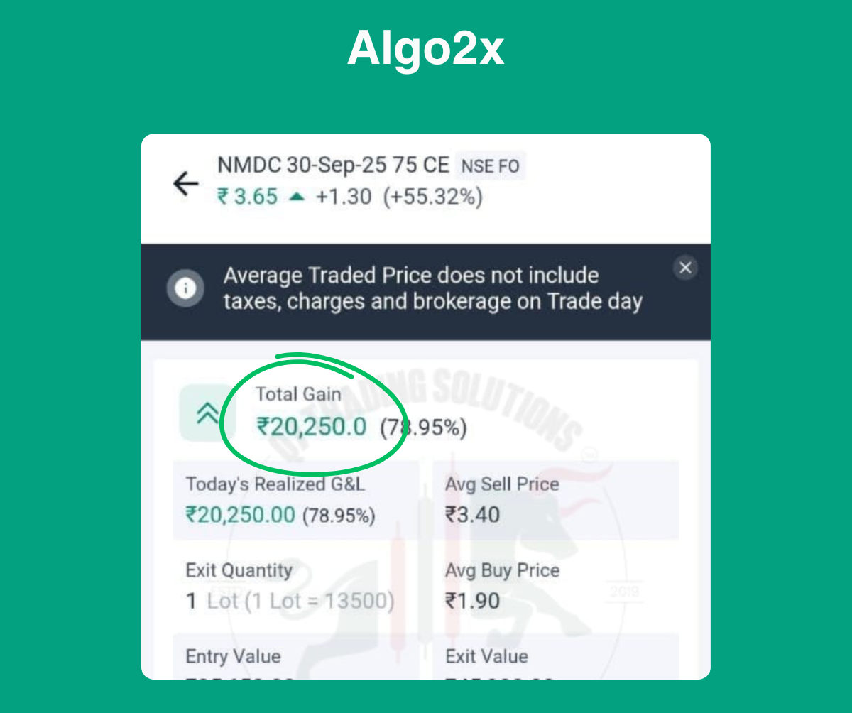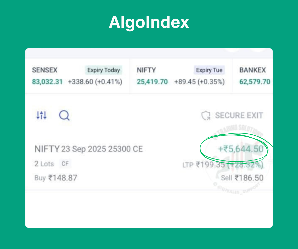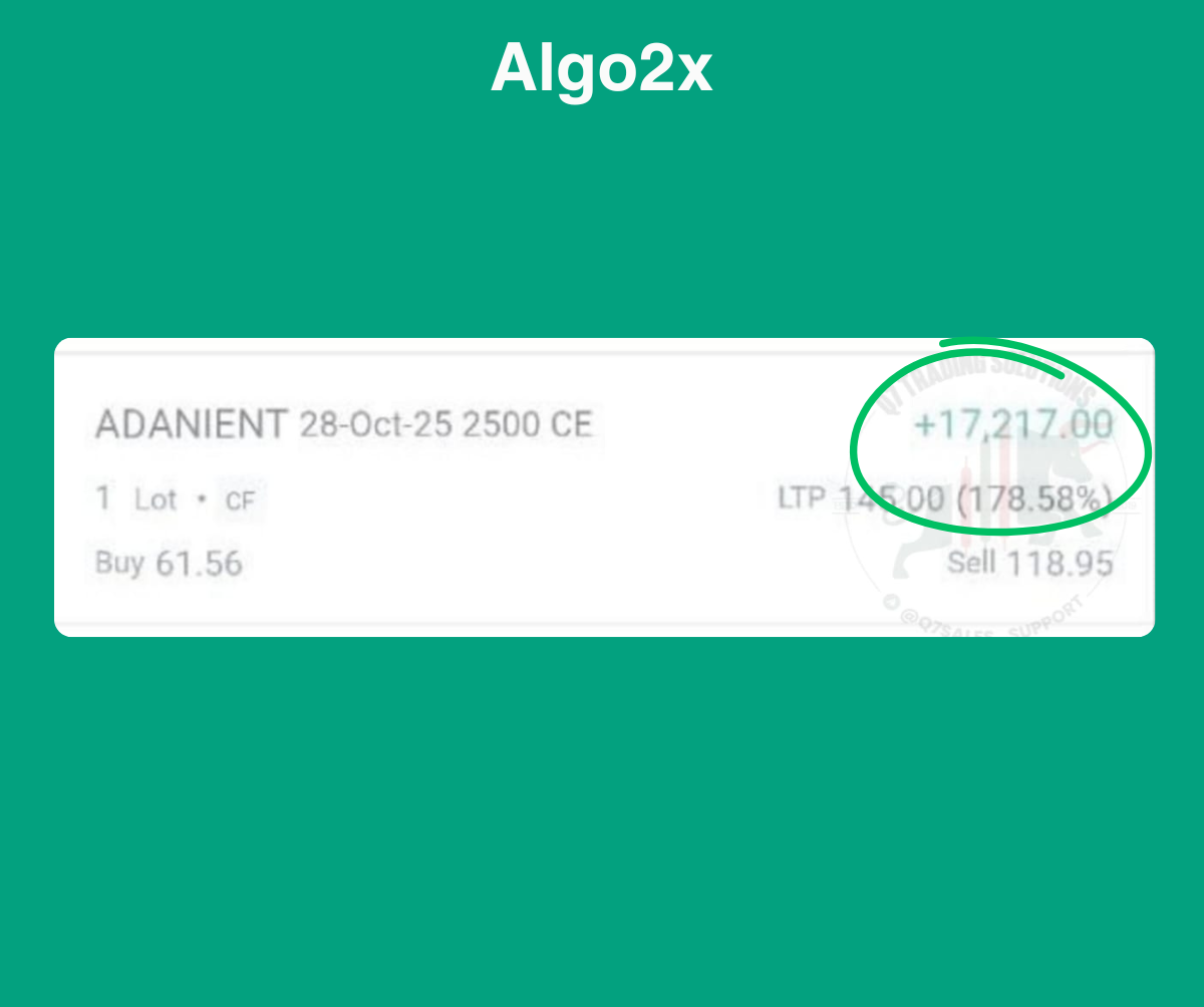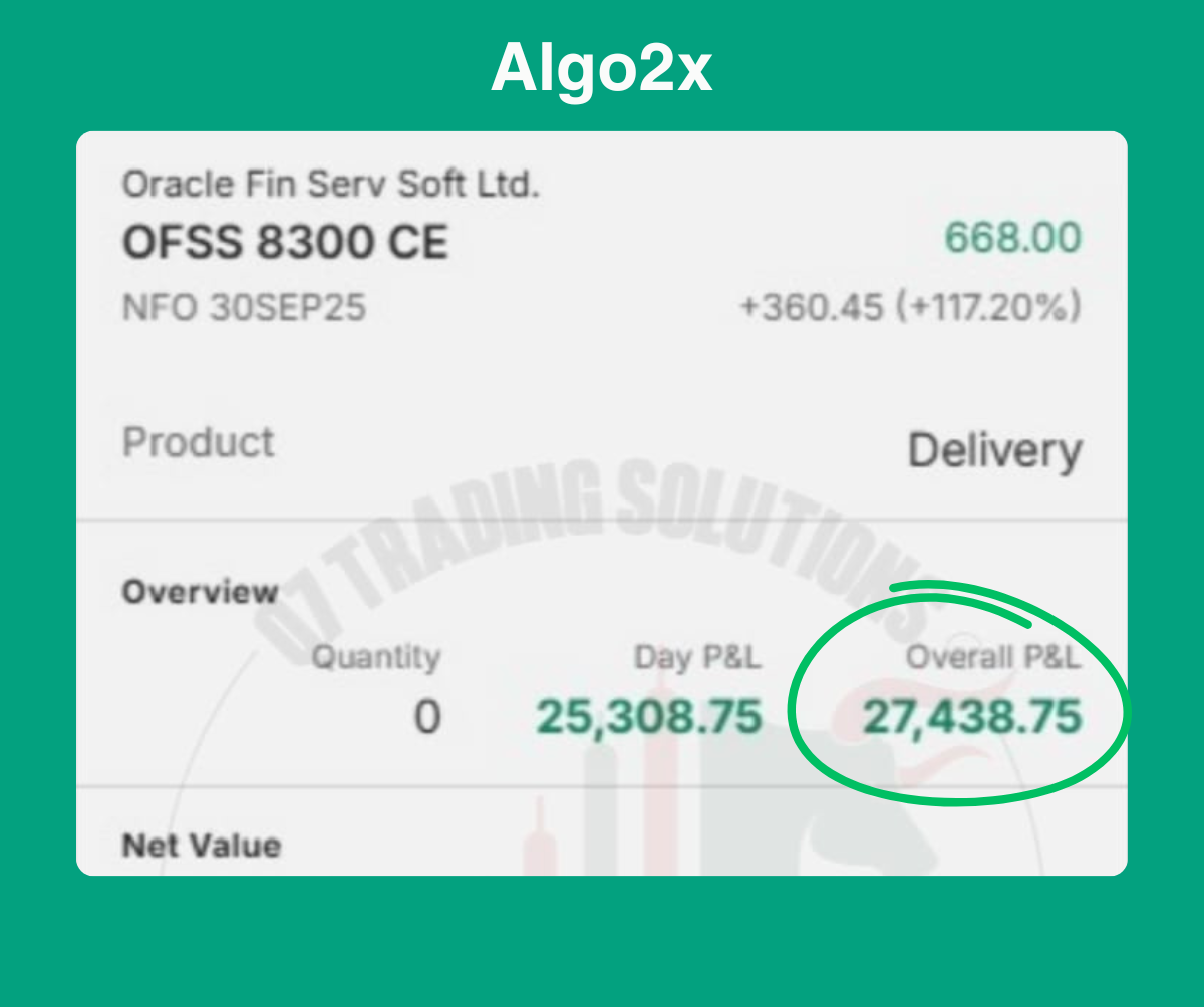 2x Algo Index + 2x Algo | Stock option + Index option | Rs. 25000 | 2x on investment amount* | Positional / Based on our algorithm | Yes | Professionals | Learn More |