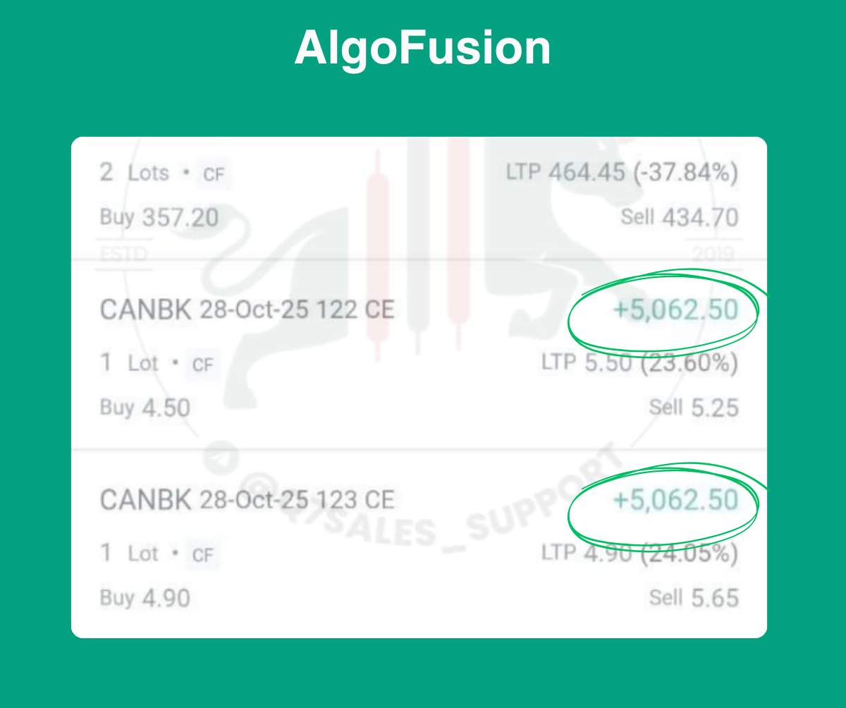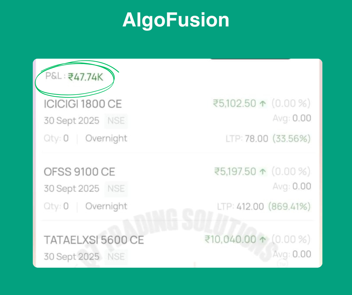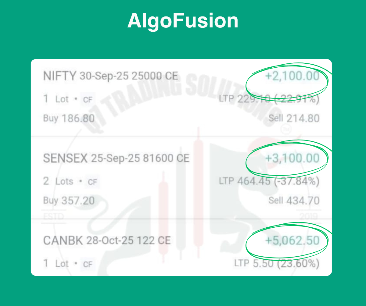 Fusion Algo | Stock options / Index option | Rs. 25000 | 10% on capital* | Daily / Based on our algorithm | Yes | Professional | Learn More |
