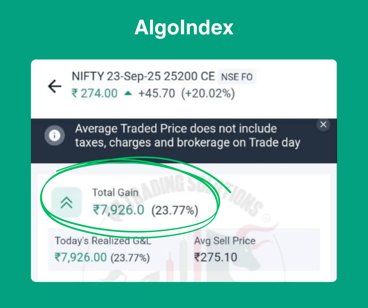 Index Algo | Intraday, index options, index | Rs. 20000 | 10% on capital* | Daily / Based on our algorithm | Yes | Beginners | Learn More |