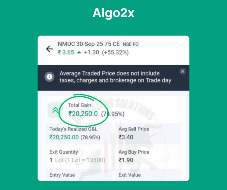 Algo Gold | Stock option | Rs. 20000 | 10000 per trade* | Daily / Based on our algorithm | Yes | Professional | Learn More |