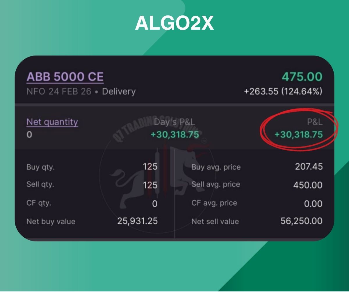 Once 2XALGO generates net profits (post-brokerage), 30% of the profits are shared with us. If there are losses, profit-sharing resumes only after the losses are recovered.
