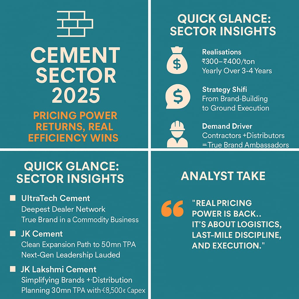 • JK Lakshmi Cement: Restructuring brands and eliminating channel conflicts. Plans ₹3,500 cr capex.